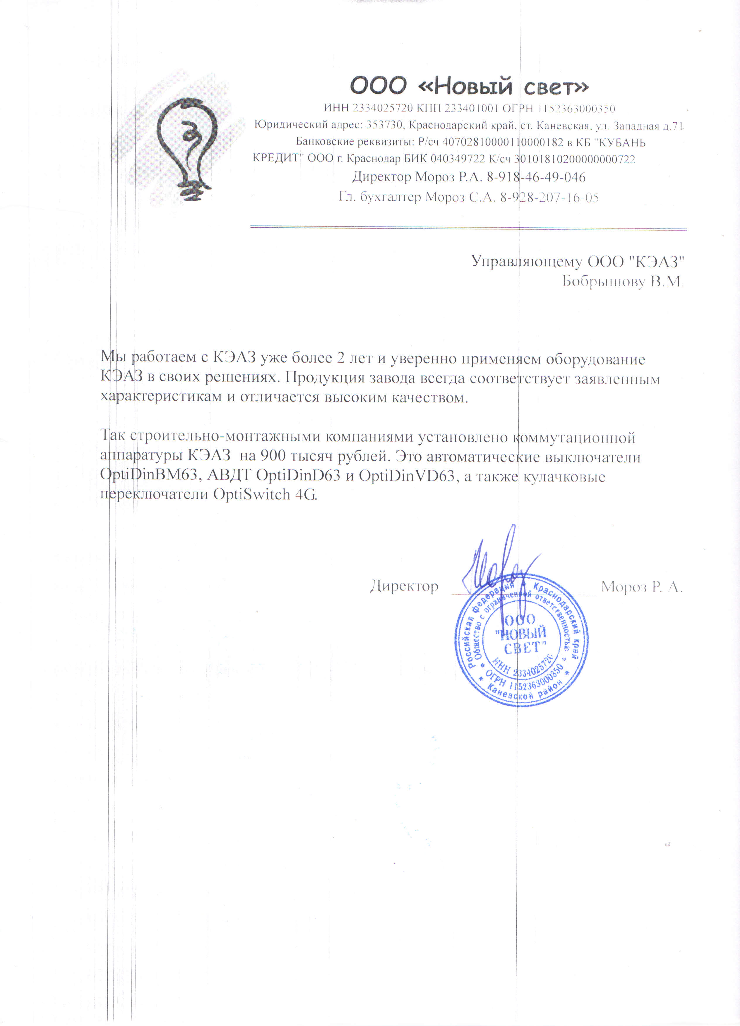 Референция ООО "Электроаппарат"